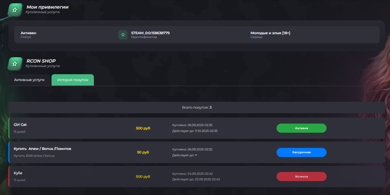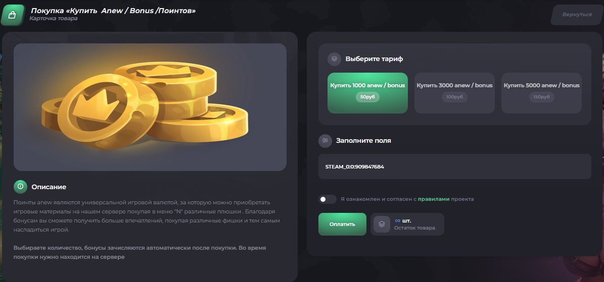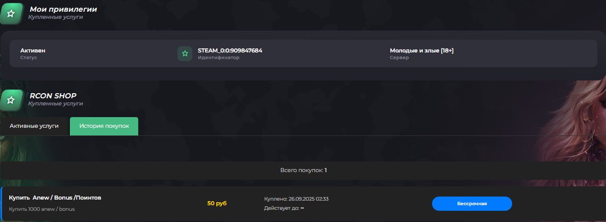 Мы рады представить обновлённую версию модуля RCON SHOP, в которой учтены пожелания пользователей и внедрены мощные новые возможности для комфортного управления покупками и услугами: